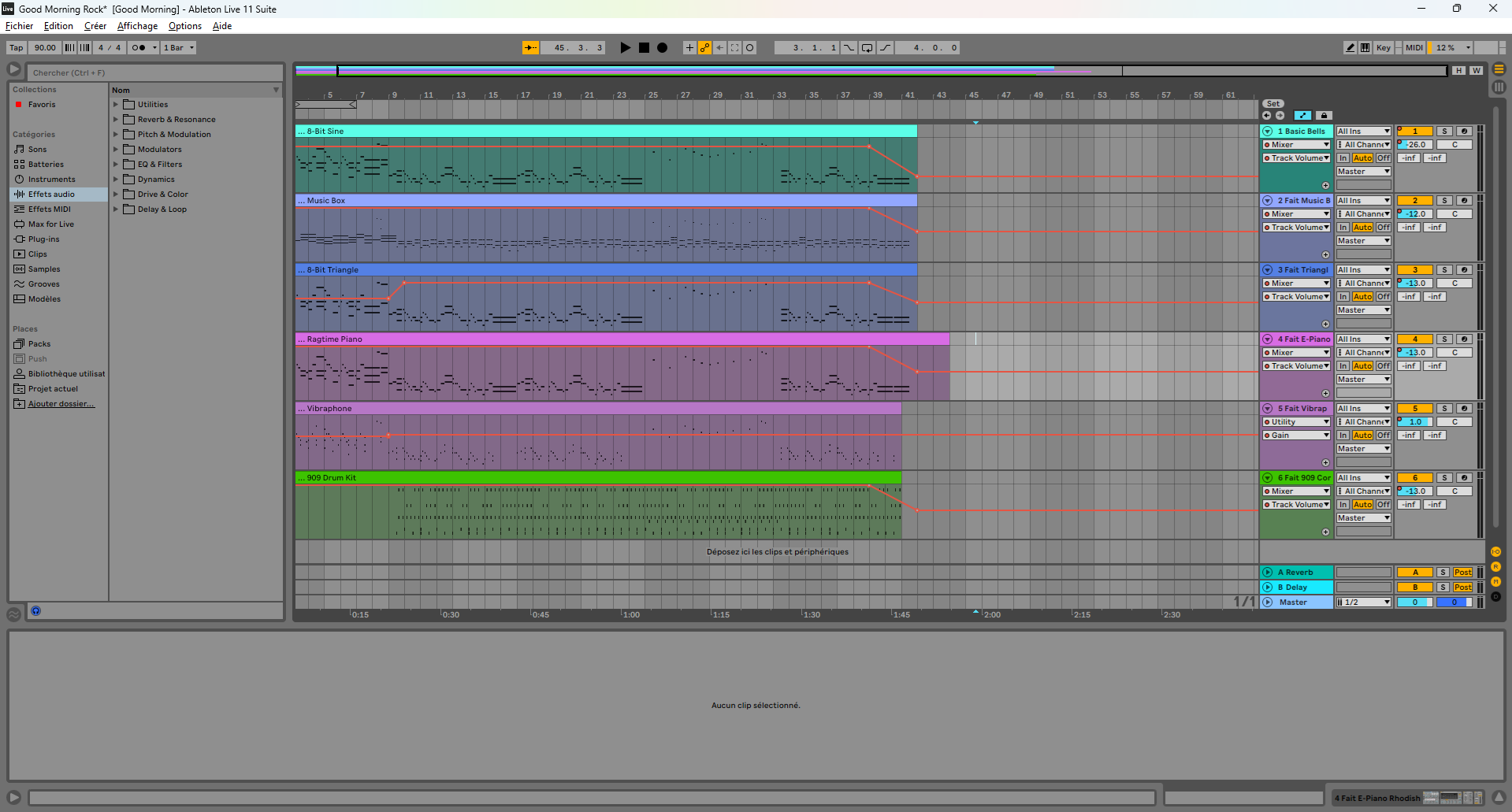 J'ajoute ensuite des instruments virtuels sur les pistes pour avoir du son